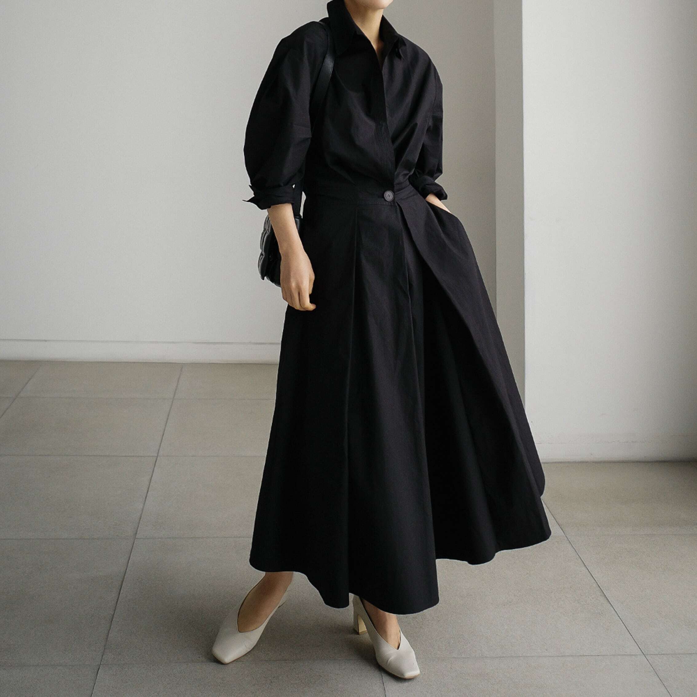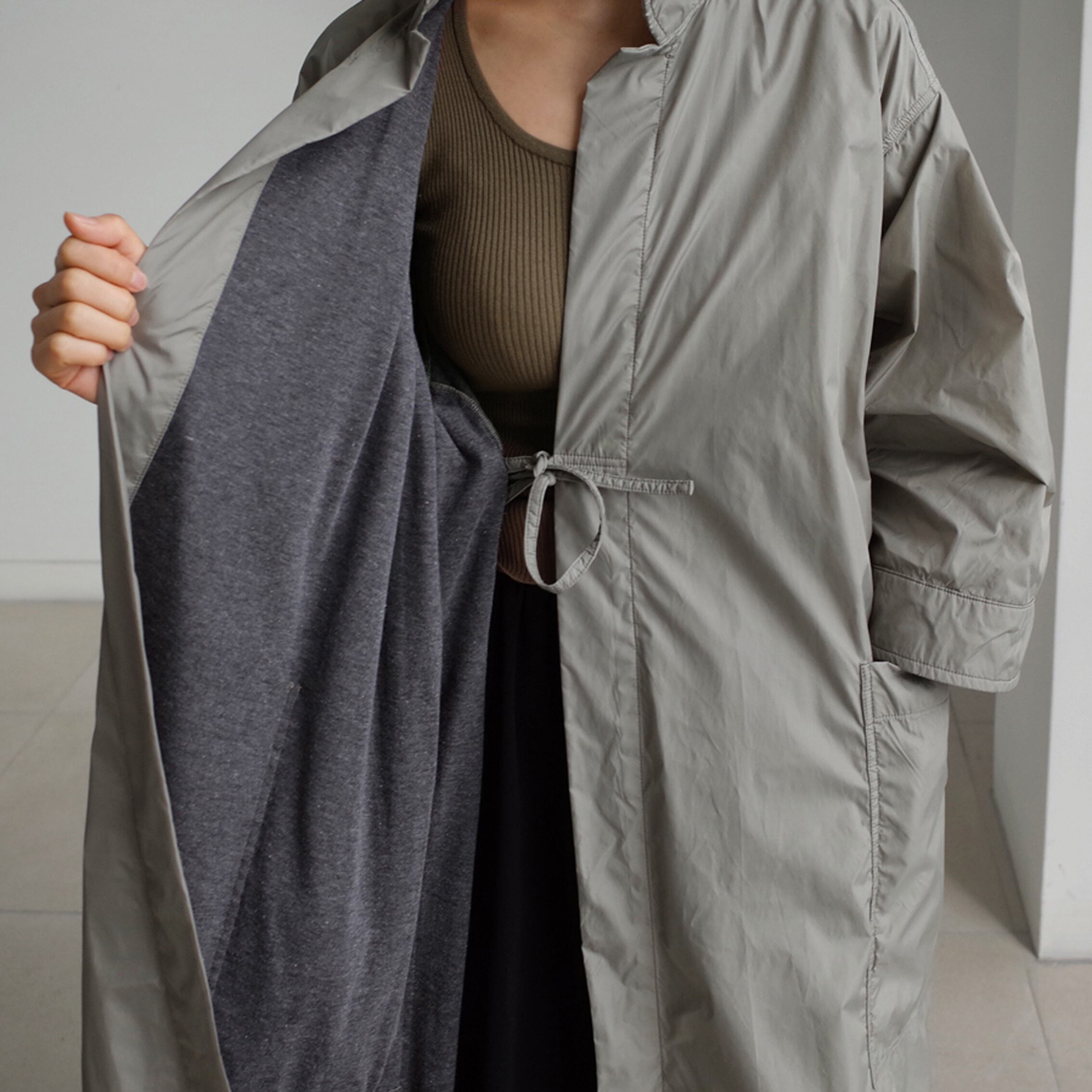 季節の変わり目にちょうど良く、ベルトを締めるとウエストがスッキリとしてメリハリのあるコーディネートに。