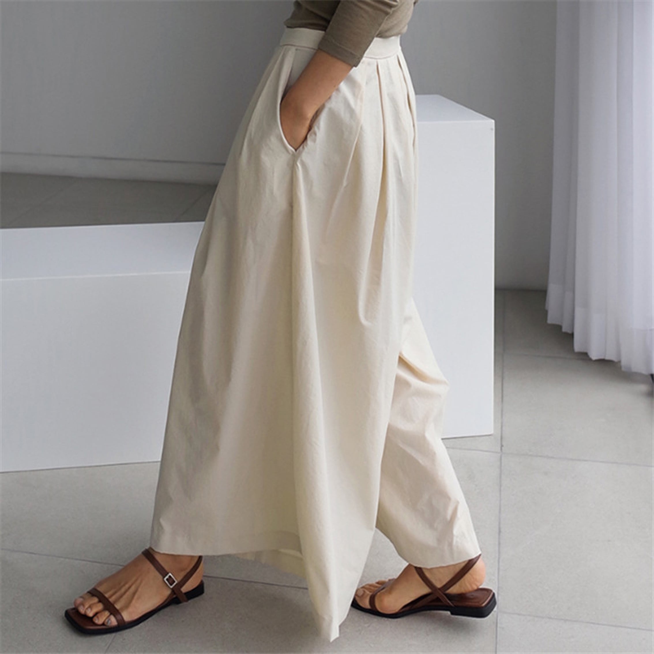 動きやすいのにロングスカートのように見えるので、楽ちんオシャレに最適。