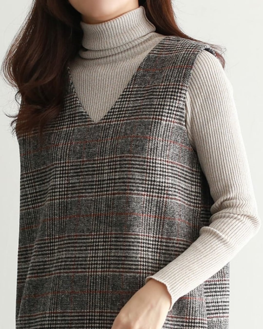 V-neck plaid jumper dress A1668