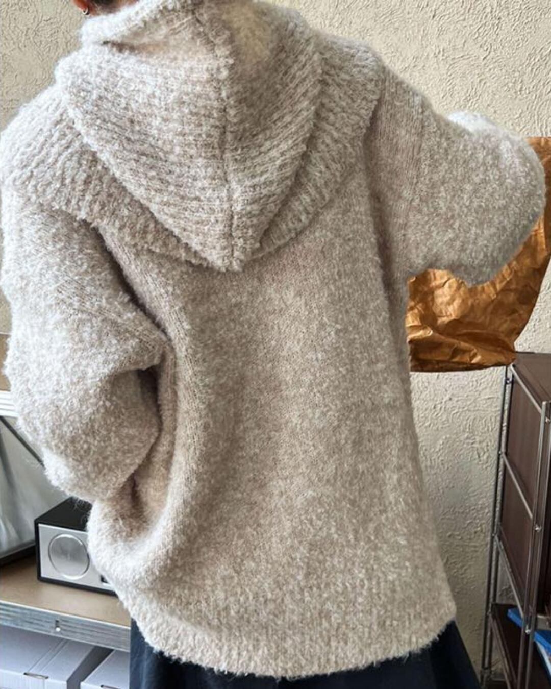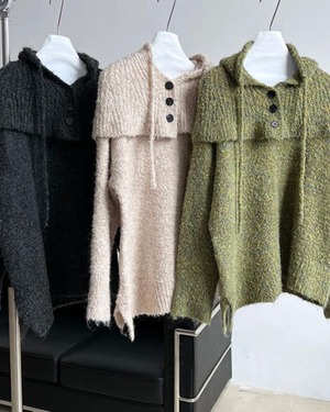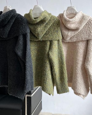 round neck knit pullover + hood set A1700